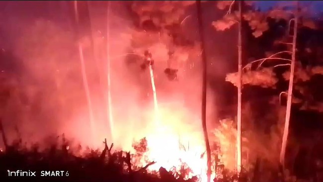 "Saat saya lagi nongkrong, kelihatan asap. Awalnya ngira mungkin ada yang babakaran. Trus pas jam 17.20 WIB api mulai terlihat membesar. Terus pas maghrib mulai sangat besar," ujar Akung, saat dihubungi detikJabar.