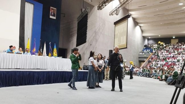 Universitas Pasundan (Unpas) menutup masa Pengenalan Kehidupan Kampus bagi Mahasiswa Baru (PPKMB) ditutup di Sasana Budaya Ganesha, Kota Bandung, Selasa (3/10/2023). Kegiatan ini menghadirkan eks Gubernur Jawa Tengah yang kini jadi bacapres Ganjar Pranowo.