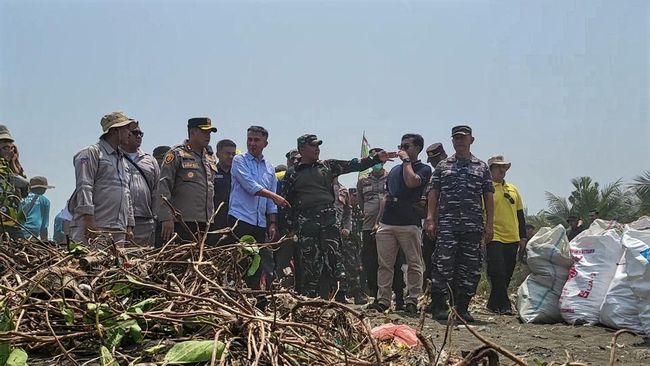 Pj Gubernur Jabar Bey Machmudin memantau langsung kegiatan bersih-bersih sampah yang melibatkan ribuan masyarakat di pesisir Pantai Loji, Kecamatan Simpenan, Kabupaten Sukabumi. Di lokasi itu, ia mendapat informasi penyebab adanya tumpukan sampah.