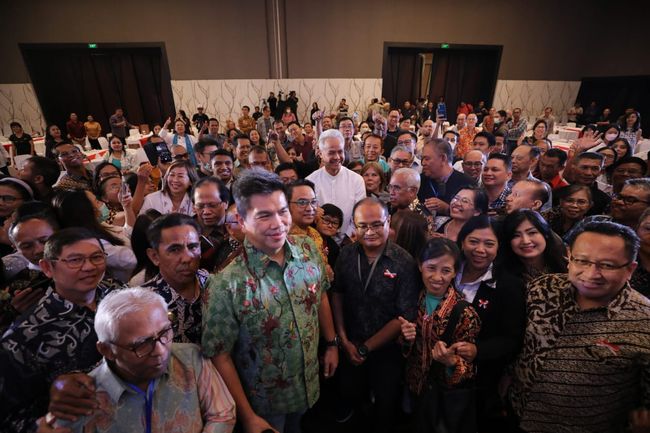 Pada kegiatan yang digelar Rabu (4/10) kemarin, Ganjar berdiskusi dan mendengar keluh kesah para umat kristiani. Mereka berebut ingin mengabadikan momen foto bersama Ganjar.