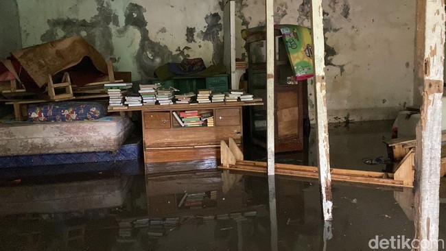 "Salurannya makin ke sana makin menyempit jadi (air) masuk ke wilayah pesantren. Majelis taklim, enam ruangan asrama santri dan rumah guru di belakang. Kitab-kitabnya sebagian aman, sebagian terendam," ujarnya.