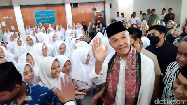 Tak henti-hentinya para santri memanggil mantan Gubernur Jawa Tengah itu. Sesekali Ganjar pun melambaikan tangan kepada para santri. Ganjar pun menyalami para santri yang dilaluinya.