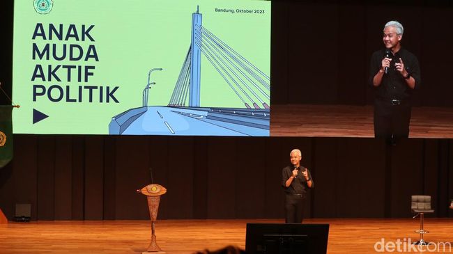 Bakal Calon Presiden (Bacapres) Ganjar Pranowo menjadi pembicara dalam kuliah umum yang digelar di Universitas Katolik Parahyangan (Unpar), Rabu (11/10/2023).