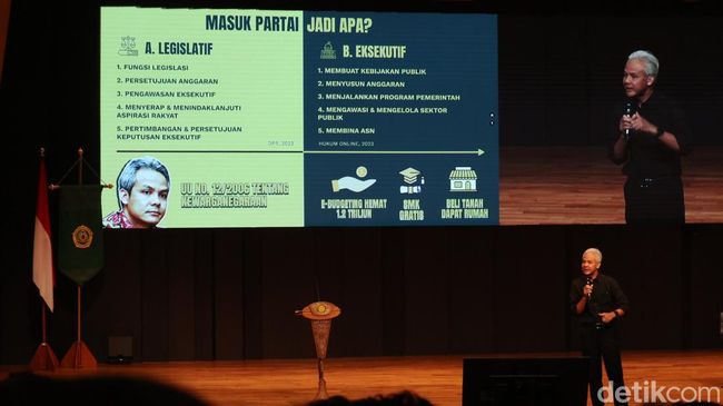 "Saya senang bahwa yang muncul dari mereka dari cara mereka bertanya mahasiswa antusias juga. Tinggal diberikan saja ruang utk mereka bisa terlibat. Maka istilah saya, saya melamar Anda untuk terlibat," ujar Ganjar.