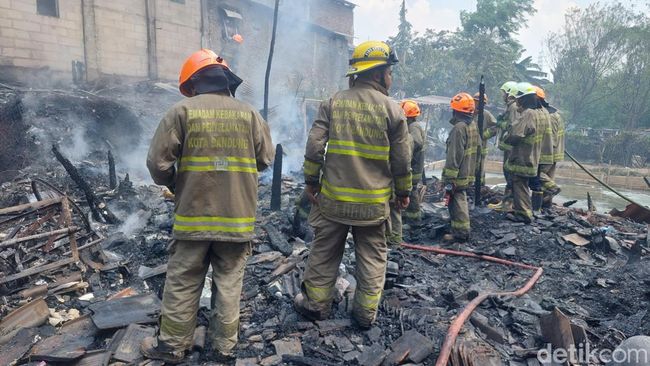 Pantauan detikJabar, Kamis (19/10/2023) sekitar Pukul 13.00 WIB, petugas Diskar PB Kota Bandung masih melakukan pemadaman di lokasi kejadian.