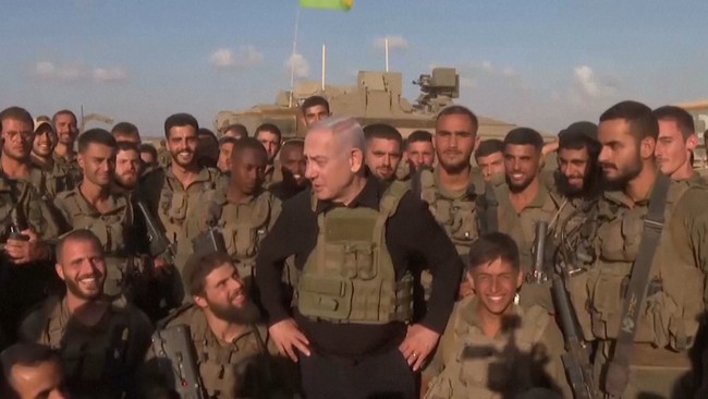 Bandung - Perdana Menteri Benjamin Netanyahu menemui pasukan Israel di perbatasan Gaza. Israel bersiap menyerbu Gaza lewat serangan darat.