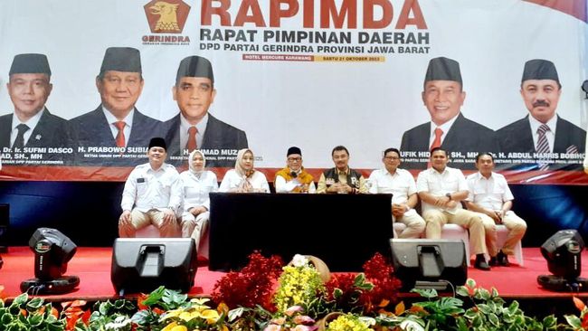 Hal itu diungkap oleh Sekretaris DPD Gerindra Jabar Abdul Harris Bobihoe, usai Rapimda yang digelar di Kabupaten Karawang, Sabtu (21/10/2023).