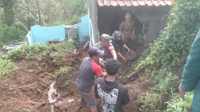 "Ada satu rumah rusak, bagian dapurnya tertimpa material longsor," tuturnya.