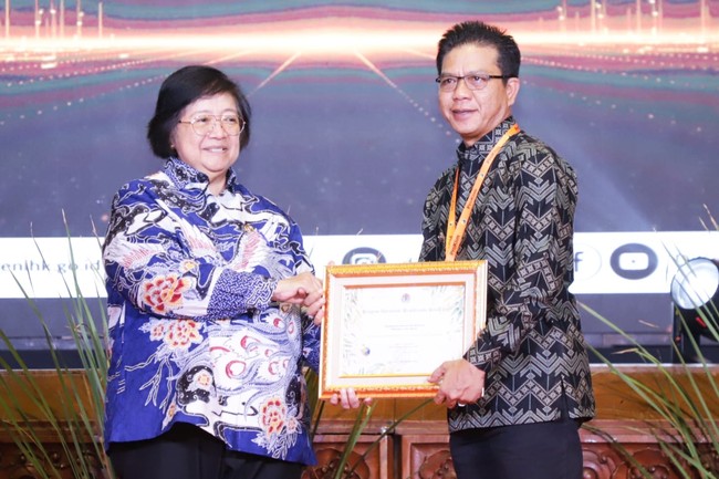 Penghargaan tersebut langsung diberikan Menteri KLHK Siti Nurbaya di Auditorium Dr. Soedjarwo, Gedung Manggala Wanabakti Kementerian Lingkungan Hidup dan Kehutanan, Senayan, Jakarta, Selasa (24/10/2023).