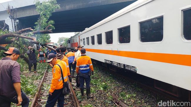 "Ya kereta jadi nggak bisa lewat, sekarang juga lagi dipotong-potong dulu pohonnya biar bisa diangkat," ujar Karyana.