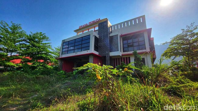 Pantauan detikJabar di lokasi Graha Pemuda Sukabumi, gedung tersebut berada di area kompleks Gelanggang Olahraga (GOR) Palabuhanratu, Jalan Ahmad Yani, Kabupaten Sukabumi. Bangunan itu berdiri gagah di antara semak belukar dan pohon liar.