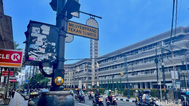 Jalanan Kota Bandung memang selalu terlihat indah, tapi sayang kadang tak dibarengi dengan terjaganya fasilitas publik. Seperti Jalan Asia Afrika yang selalu jadi langganan para turis ini, tombol penyeberangan jalannya malah tak berfungsi.
