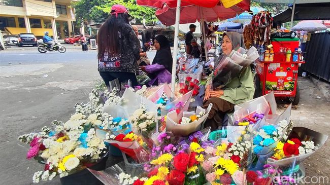"Ini ada yang besar-besar pisan 100 ribu, ada yang 50 ribu, ada juga yang 25 ribu. Trus yang ini (menunjuk ke arah bunga mawar satuan) 15 ribu dapat dua," lanjutnya.