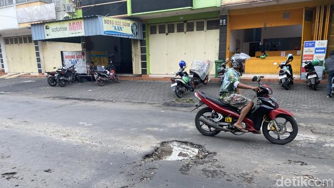 Keluhan serupa juga disampaikan oleh juru parkir setempat, Saprudin. Dia mengatakan, tak sedikit pengendara motor yang terjatuh saat menghindari lubang tersebut.