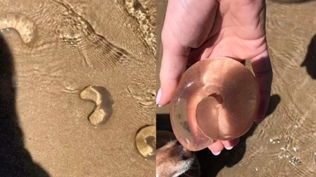 Di Facebook, seorang wanita membagikan temuan gumpalan bening tersebut. Gumpalan bening tersebut memiliki ukuran sebesar telapak tangan.
