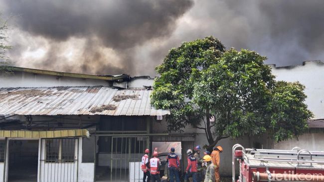 Pantauan detikJabar di lokasi, kebakaran yang melanda gudang pabrik tersebut dilaporkan terjadi pada pukul 10.56 WIB. Api terlihat melahap sebagian besar area dari pabrik tersebut yang mengakibatkan asap tebal menghitam.