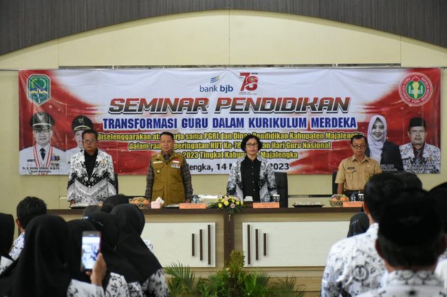 PGRI bersama Dinas Pendidikan Kabupaten Majalengka menyelenggarakan Seminar Pendidikan bertajuk 'Transformasi Guru dalam Kurikulum Merdeka' di Gedung Islamic Center Majalengka, Selasa (14/11) lalu.
