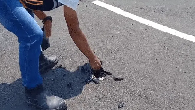 Diketahui, jalan yang baru diperbaiki kemudian rusak itu berada di wilayah Kampung Nyomplong, Desa Mekarsari, Kecamatan Ciemas, Kabupaten Sukabumi. Andri Hidayana, anggota DPRD Kabupaten Sukabumi yang menunggah foto-foto tersebut menjelaskan, jalan itu baru selesai dibangun 2 bulan lalu.