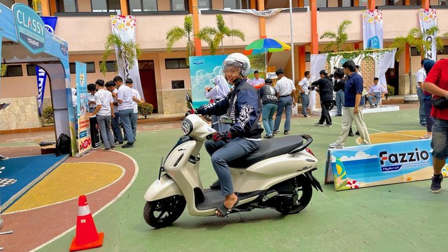 Para siswa-siswi juga dibuat antusias dengan aneka challenge berhadiah setelah berkenalan dengan Yamaha Fazzio dan Grand Filano. Dua motor ini memang punya kesan trendy dengan style khas Eropa, stylish serta elegan.