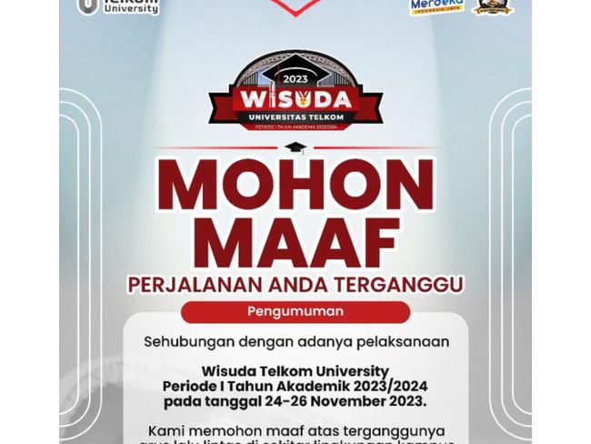 Tel-U juga sudah memuat permohonan maafnya terkait arus lalin di Jalan Terusan Buahbatu-Jalan Raya Bojongsoang itu. Terlebih, kegiatan wisuda akan dilakukan dua sesi pagi dan siang.