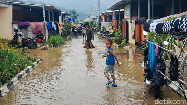Sejumlah rumah di Kompleks Bumi Citra Indah (BCI) 2, RW 10, Desa Cipatik, Kecamatan Cihampelas, Kabupaten Bandung Barat (KBB) terendam banjir. Warga pun sebagian terpaksa mengungsi ke masjid.