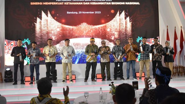 Prosesi penyerahan apresiasi digelar bersamaan dengan Pertemuan Tahunan Bank Indonesia (PTBI) di Kantor BI Jabar, Kota Bandung pada Rabu (29/11/2023).