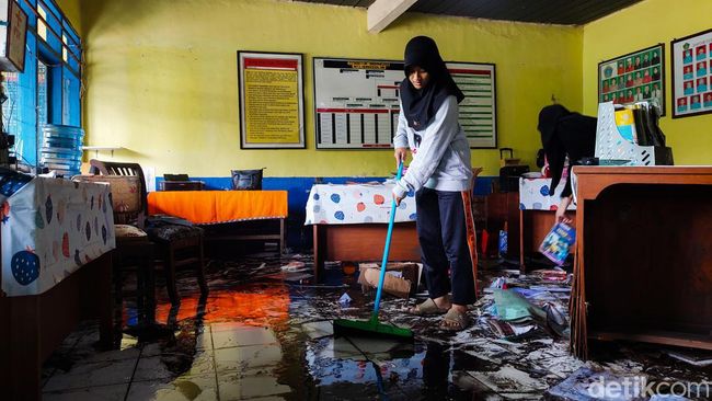 "Nggak memungkinkan buat sekolah hari ini, jadi murid juga diminta bantu bersihkan sekolah biar besok bisa dipakai lagi," kata Asyifa.
