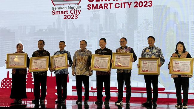 Penghargaan diberikan dalam acara Forum Smart City Nasional, Pameran dan Awarding Gerakan Menuju Smart City 2023 di Nusantara Hall, ICE BSD City Tangerang Selatan, pada Kamis (7/12/2023).