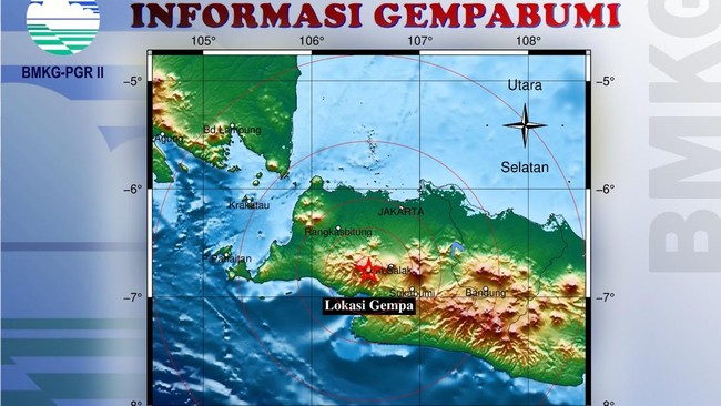 Berdasarkan informasi dari BMKG, gempa terjadi pada titik koordinat 6.76 Lintang Selatan - 106.53 Bujur Timur atau 25 kilometer Barat Laut Kabupaten Sukabumi dengan kedalaman 5 kilometer.