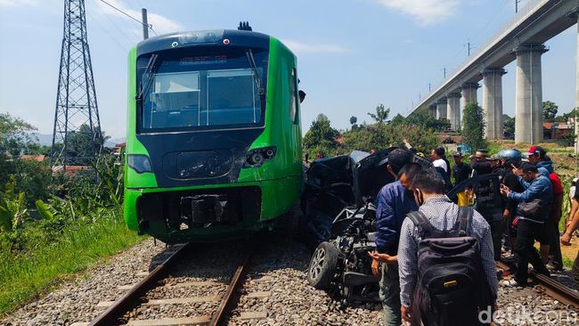 KA feeder Kereta Cepat Whoosh tabrak satu unit mobil di perlintasan sebidang tanpa palang pintu di Kampung Sumur Bor, Desa Cilame, Kecamatan Ngamprah, Kabupaten Bandung Barat, Kamis (14/12/2023).