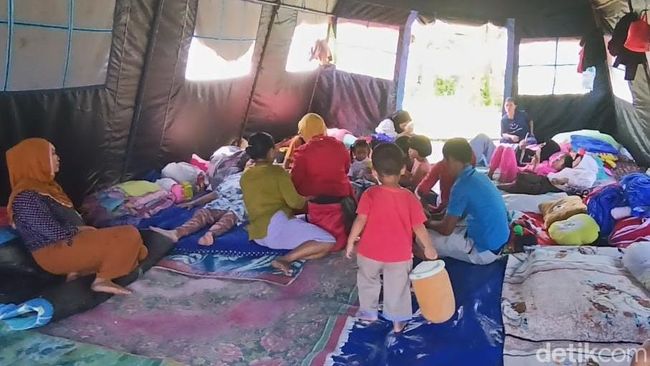 Salah satu pengungsi, Aan (34) mengatakan, kondisi para pengungsi di tenda mulai merasakan gatal-gatal hingga muntah-muntah. Kondisi tersebut dialami orang dewasa bahkan anak-anak.