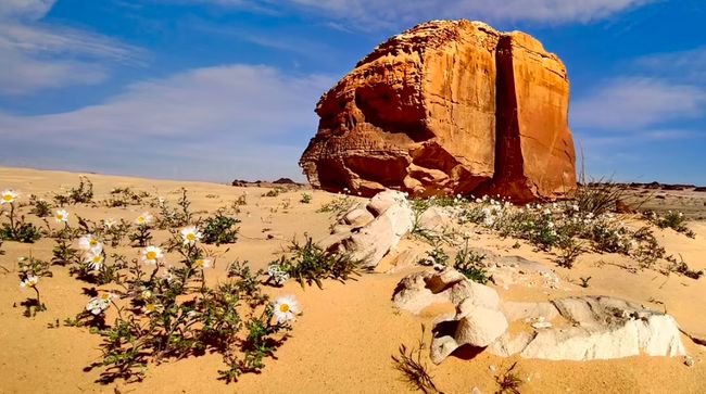 Sebuah batu raksasa di Arab Saudi mencuri perhatian. Sebab batu raksasa itu terbelah dengan rapi.