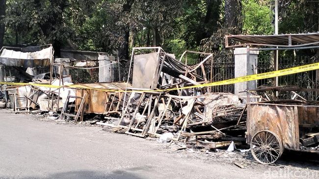 Pantauan detikJabar, Sabtu (23/12/2023), belasan lapak PKL yang sudah dalam keadaan hangus terbakar itu masih berserakan di pinggir Jalan Cilaki yang berada dekat dengan Taman Cibeunying. Garis polisi juga masih terpasang pada belasan lapak PKL tersebut.