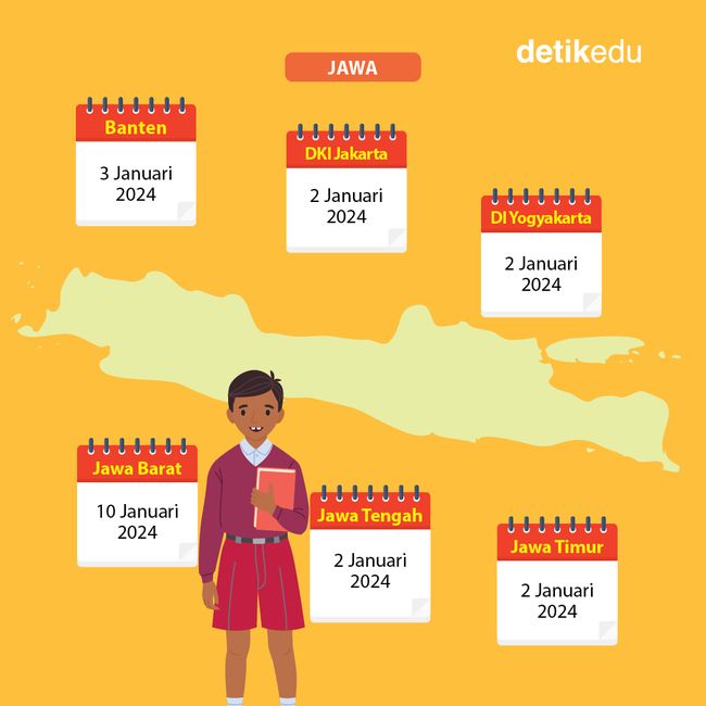 Bandung - Siswa yang ada di Jawa Barat bersiap-siap kembali sekolah di tahun ajaran yang baru 2024. Usai liburan semester 2023/2024, kapan tanggal masuk sekolah? Simak infografis ini.