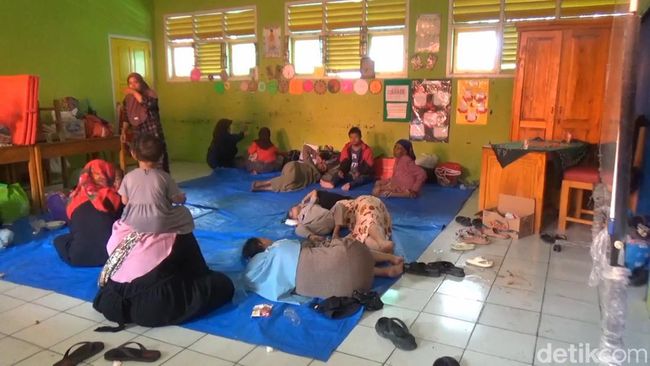 Mereka bertahan di lokasi pengungsian karena tempat tinggalnya masih belum dinyatakan aman oleh petugas. Longsoran tanah, bebatuan hingga pohon masih dibiarkan dan belum dilakukan upaya pembersihan.