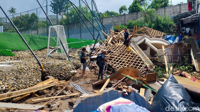 Sabtu (6/1) petang, banjir bandang menerjang saat hujan deras mengguyur. Sepuluh rumah terendam banjir dengan ketinggian rata-rata 1,5 meter. Dua rumah di antaranya bahkan porak-poranda tertimpa benteng lapangan mini soccer yang ambruk.