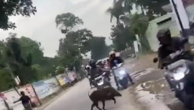Setelah itu babi tersebut lari dengan cepat ke arah pemukiman warga. Kemudian ada pemiliknya yang turut lari mengejar babi tersebut.