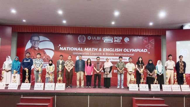 National Math and English Olympiad 1st Tahun 2024 sukses digelar di Kota Bandung. Kegiatan ini ditutup di Aula Kampus Universitas Logistik dan Bisnis Internasional (ULBI), Kota Bandung, Rabu (10/1/2024).