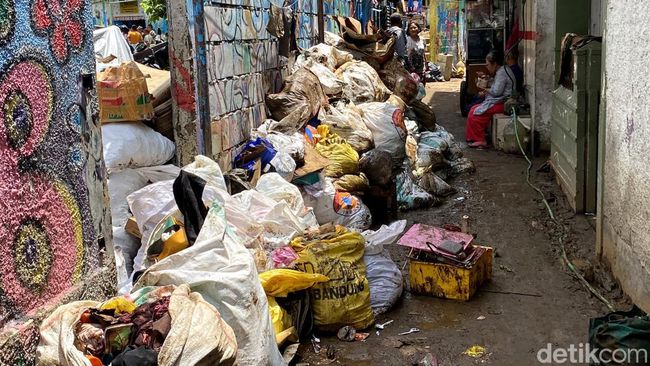 Banjir bandang yang terjadi akibat luapan Sungai Cikapundung Kota Bandung, Kamis (11/1/2024) menyisakan banyak sampah di pemukiman warga yang berada di kawasan Braga. Pantauan detikJabar, Sabtu (13/11/2024) di Gang Apandi, sejumlah warga sedang sibuk membersihkan lumpur akibat luapan Sungai Cikapundung.