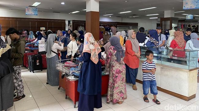 Dari pantauan detikJabar di lokasi, Senin (15/1/2024), kondisi kepadatan masyarakat terjadi di area parkir depan bangunan gedung Toserba Tiara hingga pintu masuk. Mereka memadati lantai 1 yang berisi produk fesyen dan lantai 2 tempat perbelanjaan sembako. Bahkan ada warga yang rela antre sejak pagi sebelum toserba itu dibuka.