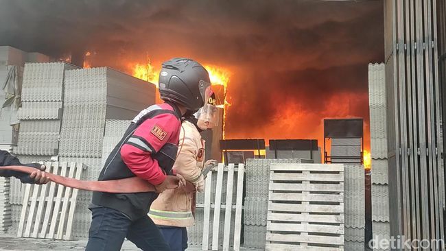 Pantauan detikJabar, hingga pukul 17.24 Wib, kobaran api dan kepulan asap tebal masih terlihat. Empat mobil pemadam diterjunkan untuk memadamkan api.