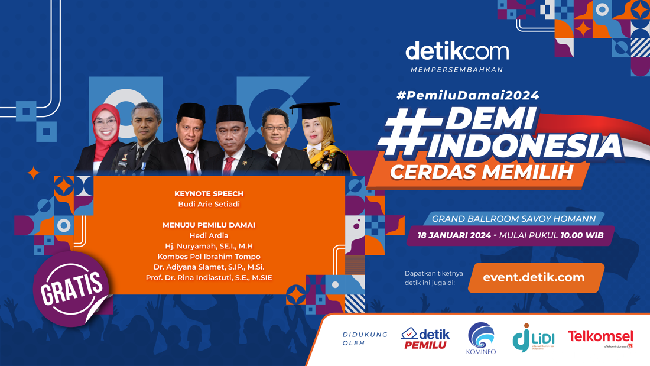 Tahun 2024 ini, masyarakat Indonesia akan mengikuti pesta demokrasi melalui pemilu mulai dari pemilihan presiden hingga anggota legislatif. Mendukung kegiatan pemilu yang akan diselenggarakan 14 Februari mendatang, Kementerian Komunikasi dan Informatika (Kemenkominfo) bersama detikcom dan didukung Telkomsel menggelar acara #Demi Indonesia Cerdas Memilih.