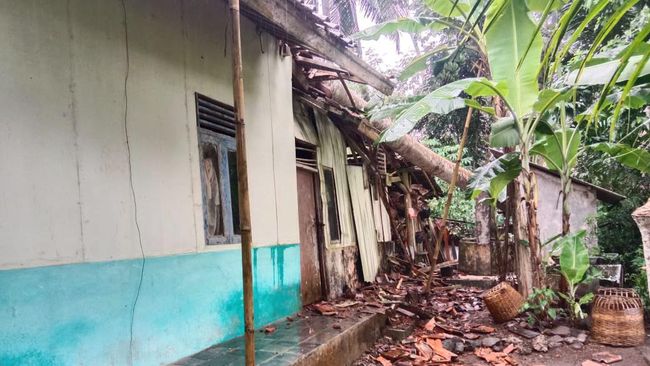Salah satunya rumah yang rusak adalah milik Iin (71). Rumahnya tertimpa pohon albasia besar di bagian belakang atau dapur rumah.