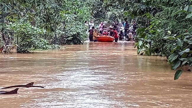 Fahrudin mengatakan, karena tingginya air, pihak desa setempat sudah menurunkan perahu karet bantuan BPBD untuk akses lintas warga di sekitar lokasi kejadian.