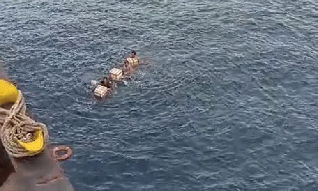 Dalam video tersebut, terlihat tiga sekawan itu bertahan dengan memegangi stereofoam yang biasa dipakai nelayan untuk menyimpan ikan hasil tangkapan. Selain itu, terlihat sebuah bambu panjang yang dinaiki ketiganya agar tidak tenggelam.