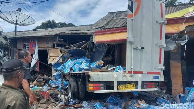 Mobil boks tersebut menabrak bengkel dan warung yang ada di sisi jalan raya. Kepingan pecahan kendaraan berserakan di jalan raya.