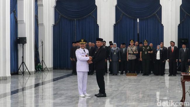 Barnas Adjidin resmi dilantik sebagai Penjabat (Pj) Bupati Garut. Pelantikan dilakukan oleh Pj Gubernur Jawa Barat Bey Machmudin di Aula Barat Gedung Sate, Kota Bandung, Selasa (23/1/2024).