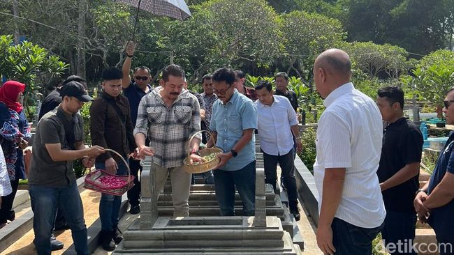 Pantauan detikJabar sesampainya di makam, Burhanudin tampak langsung mengambil posisi duduk. Ia terlihat khusyuk memanjatkan doa untuk sesepuhnya yang telah meninggal dunia. Usai mendoakan, ia terpantau langsung menaburkan bunga di atas makam.