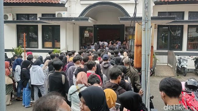 Pantauan detikJabar di Kantor Pos Cianjur, Jalan Siti Jenab, tampak antrean panjang terjadi sejak Rabu (7/2/2024) pagi. Bahkan antrean mengular hingga ke trotoar di depan Pemkab Cianjur. Bahkan informasinya puluhan pencari kerja itu sudah mulai mengantre sejak pukul 05.00 WIB.