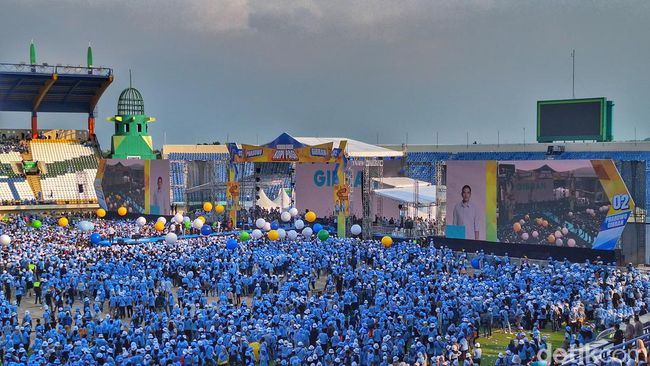 Para pendukungnya tersebut rela berpanas-panasan di tengah lapangan. Berbagai spanduk dukungan bagi paslon nomer 2 terpampang banyak. "Prabowo Gibran selangkah menuju kemenangan," begitu tulisan dalam spanduk.